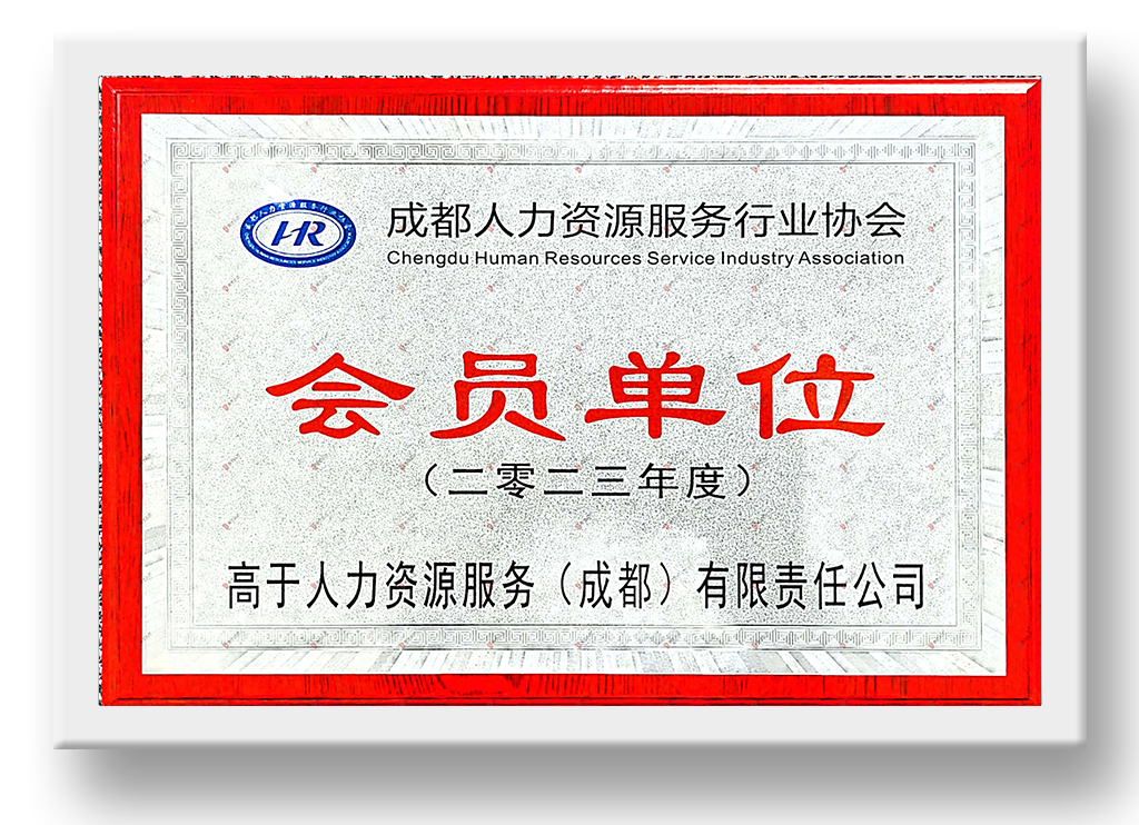 高于人力分别于2023年5月、10月,获批成为四川省、成都市人力资源服务行业协会会员单位。四川省、成都市人力资源服务行业协会对行业建设发展,团结带领广大会员单位和行业机构,共同推动四川省、成都市人力资源服务行业高质量发展具有重大现实意义,在加强行业规范自律和诚信服务体系、行业标准化建设,及时反映会员诉求、努力维护行业利益,充分发挥参谋助手和起到桥梁纽带作用,本次获批肯定了高于人力的专业市场地位与其品牌影响力。