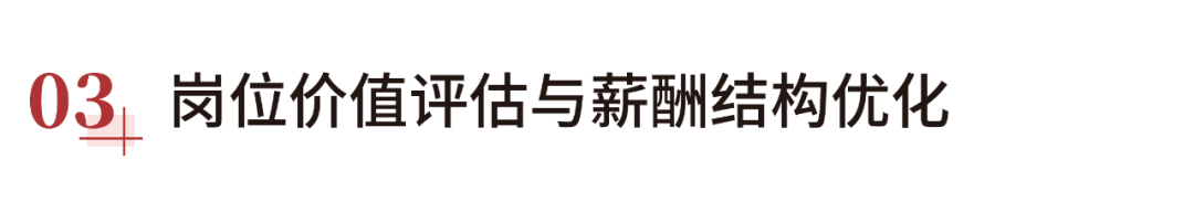 组织岗位价值评估,公司职能岗以固浮薪酬制为主,优化原有薪酬结构,明确不同层级的固定、浮动薪酬占比,确保合理性。